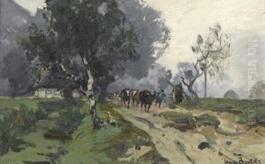 Bauer Mit Kuhherde Auf Einer Landstrasse