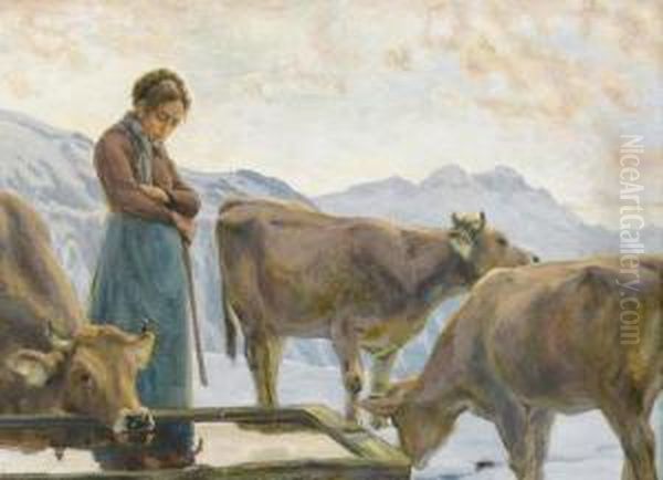 Bring the timeless beauty of Hans Widmer's Kuhe An Der Tranke Mit Bauerin Im Winter. into your home with a handmade oil painting reproduction. Carefully recreated on canvas by skilled artists using traditional techniques, this piece captures the delicate brushwork, subtle light, and vibrant color of the original masterpiece. With museum-level quality and rich texture, it brings elegance and artistic depth to any space. Enjoy free shipping and make this masterpiece a part of your personal collection.