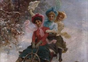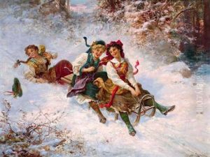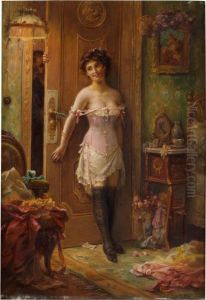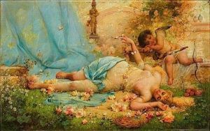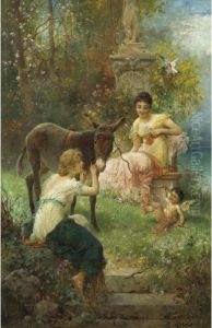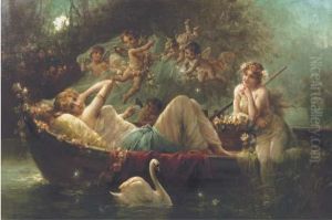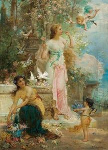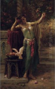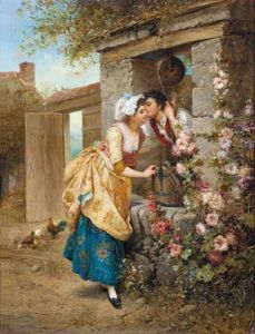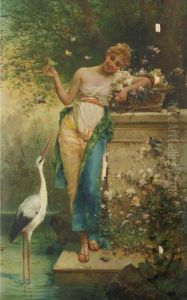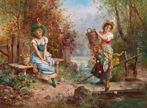Maiden With Flower Basket Stepping On Stones Whilecrossing A Stream
