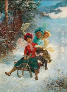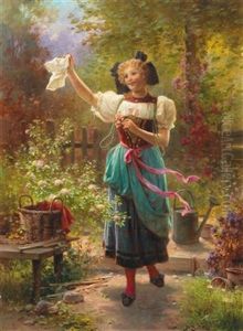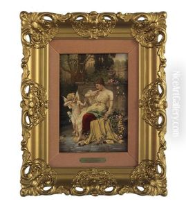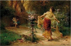 Funf Junge Damen An Einem See Mit Schmetterlingen U. Springenden Fischlein