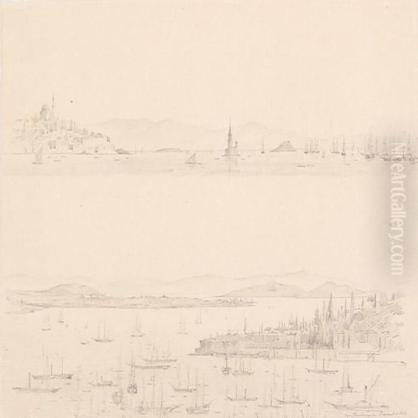 Three Landscapes Constantinopel And Bosperus On Two Sheets