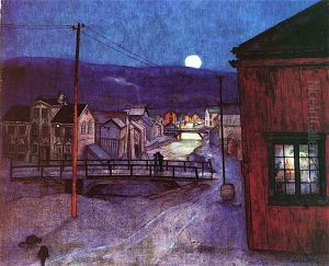 One of Sohlberg’s most famous works, 'Winter Night in the Mountains' (1914), epitomizes his ability to capture the silent, mystical qualities of the Norwegian landscape. It is a prime example of his meticulous approach to painting, where every detail contributes to the overall atmosphere of the piece. This painting, among others, showcases Sohlberg's fascination with the interaction between light and landscape, a theme that runs throughout his work.