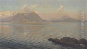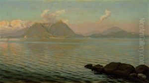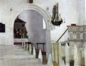 Portraet Af Kunstnerens Hustru Agnes Slott-moller I Blomstret Shawl Ved Vandet
