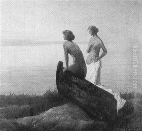 Bathers At Dusk Oil Painting by Harald Slott-Moller