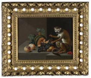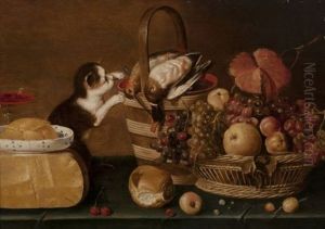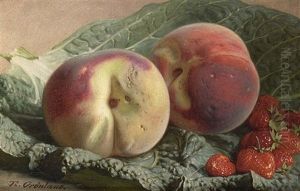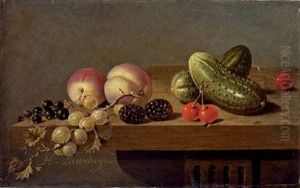 A Cherry, A Hazelnut, A Lemon, An Apricot, Peaches And Grapes On A Stone Ledge