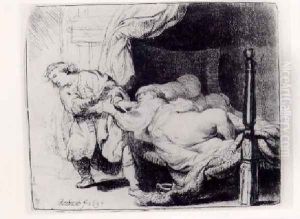 A Nude Man Standing, Another Seated, With A Woman And A Baby Lightly Etched In The Background