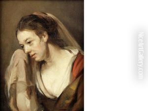 Self-portrait In A Cap And Scarf With The Face Dark: Bust