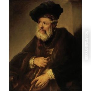 A Bearded Old Man, Seated Half-length, Holding A Cane