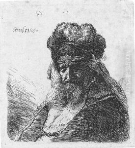 Old Bearded Man In A High Fur Cap, With Eyes Closed (b., Holl.290; H.130; Bb.35-3)