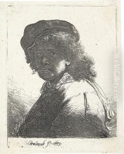Self Portrait In A Cap And Scarf With The Face Dark: Bust.