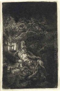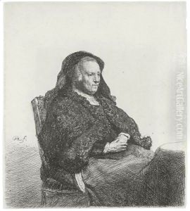 The Artist's Mother seated at a Table looking right Three-quarter Length