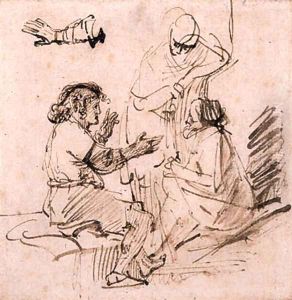 Joseph in Prison interpreting the Dreams of the Pharaoh's Baker and Butler, and a subsidiary study of an arm gesturing