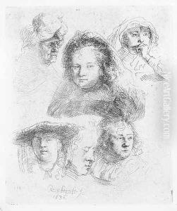Sheet of Studies Head of the Artist, a Beggar Couple, Heads of an old Man and an old Woman, etc.