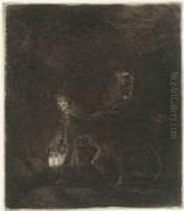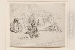 Nude Man Seated And Another Standing With A Woman And A Baby