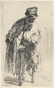 Beggar In A High Cap, Standing And Leaning On A Stick (b., Holl. 162; H. 15; Bb. 31-1)