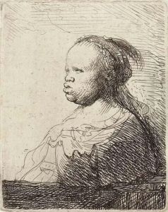 Rembrandt's Mother In Widow's Dress, Black Gloves. Etching