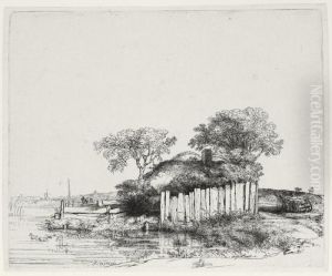 Cottages And Farm Buildings With A Man Sketching (b., Holl. 219; H. 213; Bb. 45-2)