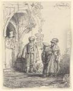 Three Oriental Figures (jacob And Laban?)
