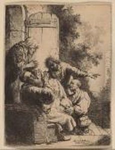 Beggars Receiving Alms At The Door Of A House (b., Holl.176; H.233; Bb.48-c)
