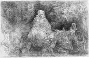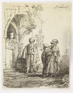 Three Oriental Figures (jacob And Laban?) (b., Holl.118; H.183; Bb.41-f)