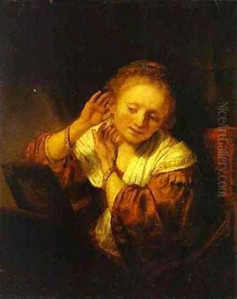 Bring the timeless beauty of Harmenszoon van Rijn Rembrandt's A Young Woman Trying On Earings 1657 into your home with a handmade oil painting reproduction. Carefully recreated on canvas by skilled artists using traditional techniques, this piece captures the delicate brushwork, subtle light, and vibrant color of the original masterpiece. With museum-level quality and rich texture, it brings elegance and artistic depth to any space. Enjoy free shipping and make this masterpiece a part of your personal collection.