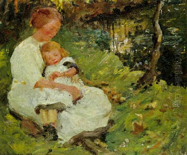 Mother And Child Oil Painting by Harold Harvey