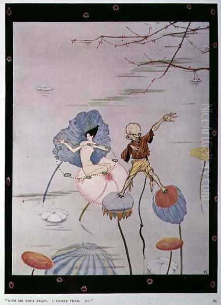 Bring the timeless beauty of Harry Clarke's "Give me your Beads, I Desire Them", illustration from 'Overhead on a Saltmarsh', a poem by Munro into your home with a handmade oil painting reproduction. Carefully recreated on canvas by skilled artists using traditional techniques, this piece captures the delicate brushwork, subtle light, and vibrant color of the original masterpiece. With museum-level quality and rich texture, it brings elegance and artistic depth to any space. Enjoy free shipping and make this masterpiece a part of your personal collection.
