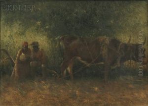 A Wooded Landscape With Two Stags And A Deer In A Clearing By A River
