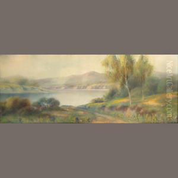 Wildflowers And Trees Along A Peaceful Lake