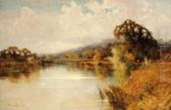 Cattle Watering In A Wooded River Landscape