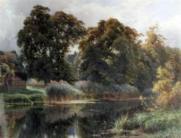 River Landscape With Church Viewed Through Trees