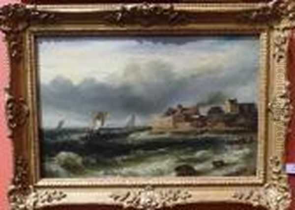 Fishing Boats In A Squall Off A Coastline