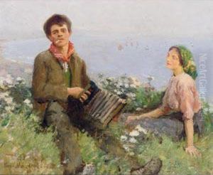 Midge Bruford And Her Fiance At Chywoone Hill, Newlyn