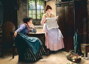 A Lady With A Pink Cloak And Bonnet In A Forest