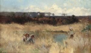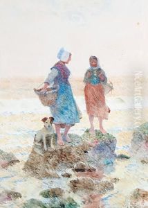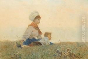 Coastal Scene With Children Picking Flowers On A Cliffside