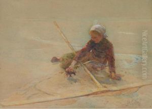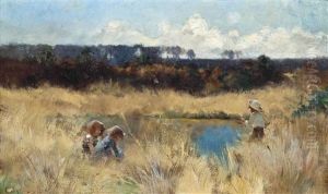 A Lady Artist In A Wood; And A Wooded River Landscape