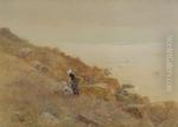Coastal Scene With Children Picking Flowers On A Cliffside