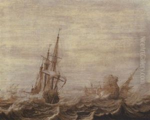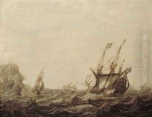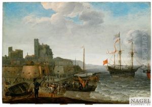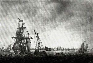 A Man-of-war And Other Shipping In Front Of A Dutch Town