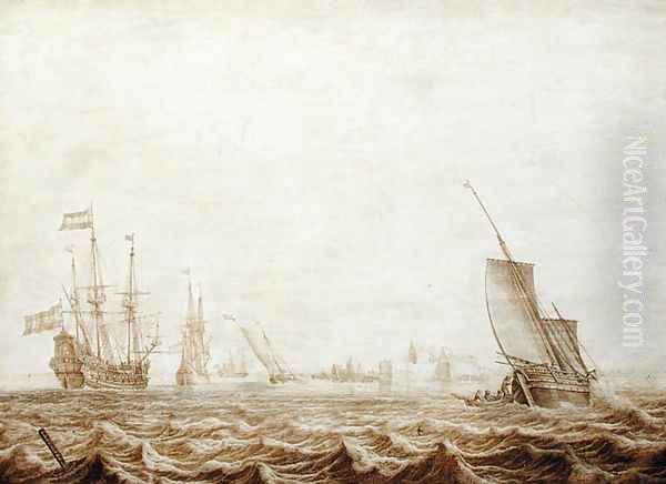 A Wijdschip Lowering Sail in a Choppy Sea, mid-17th century
