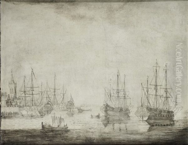 Shipping At Anchor In A Calm