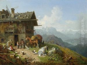 Wirtshaus Auf Der Alm Mit Alpzug