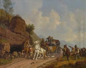 Uberfall Auf Eine Reisekutsche Oil Painting by Heinrich Buerkel