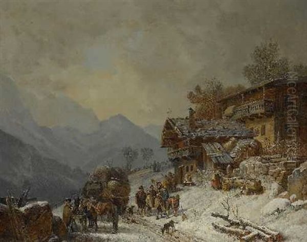 Bring the timeless beauty of Heinrich Buerkel's Winterlicher Bauernhof Mit Fuhrwagen Und Einer Gruppe Von Bauern Mit Schneeschaufeln into your home with a handmade oil painting reproduction. Carefully recreated on canvas by skilled artists using traditional techniques, this piece captures the delicate brushwork, subtle light, and vibrant color of the original masterpiece. With museum-level quality and rich texture, it brings elegance and artistic depth to any space. Enjoy free shipping and make this masterpiece a part of your personal collection.