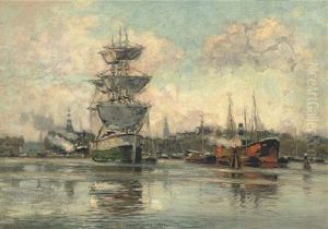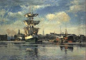 Sailing Vessels On The Merwede With Dordrecht In The Distance