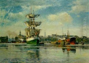 Ankernder Dreimaster Vor Einem Hollandischen Hafen