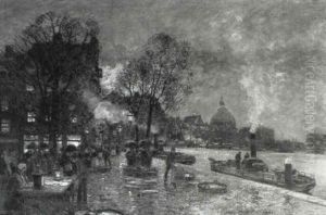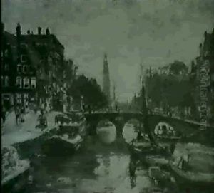 A View Of The Gelderse Kade, Amsterdam, With The Waag And Zuidekerk
