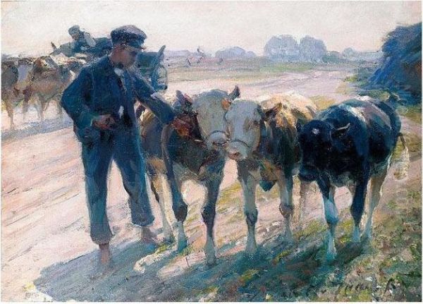 Bauer Und Drei Kalber (farmer Leading His Calves)