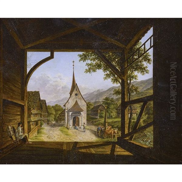 Bauerliche Landschaftspartie Mit Einer Kapelle