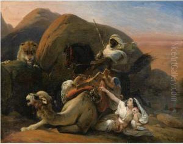 Bring the timeless beauty of Heinrich Schopin's Lion Surprising An Arab Family into your home with a handmade oil painting reproduction. Carefully recreated on canvas by skilled artists using traditional techniques, this piece captures the delicate brushwork, subtle light, and vibrant color of the original masterpiece. With museum-level quality and rich texture, it brings elegance and artistic depth to any space. Enjoy free shipping and make this masterpiece a part of your personal collection.