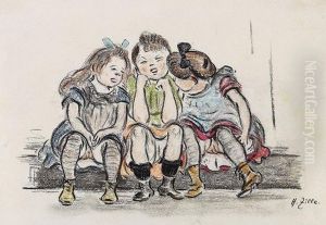 "funf Kinder Auf Einer Bank"
